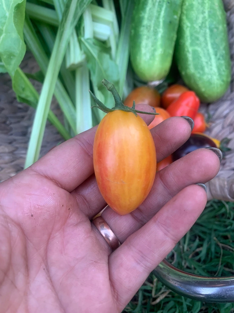 Tomate Cherry Blush (Ruborizado) Tienen un sabor dulce, afrutado y equilibrado con notas tropicales que recuerdan a las mandarinas. Es importante señalar que el sabor cambia con la madurez, desarrollando notas más dulces cuanto más maduro… Es de color amarillo muy brillante, a medida que va madurando aparece un rubor anaranjado con rayas rojas y rosadas… La piel es suave, tersa y brillante con una consistencia masticable semi-dura, lo que lo hace resistente a las agrietaduras. Son un poco más grandes que las variedades de tomates cherry comunes, con un promedio de 5 a 6 centímetros de largo y de 1 a 2 centímetros de diámetro, y tienen una forma ovalada.. Los tomates Blush o ruborizados se consideran una de las creaciones más famosas de Fred Hempel, criador de tomates y genetista líder en el campo de la biotecnología, cuando se le pregunta sobre la historia de la variedad, Hempel le da crédito a su hijo por la existencia del tomate, el niño tenía ocho años cuando su padre le pidió que seleccionara los tomates que más le gustaban para ser cruzados. El niño decidió basar su decisión solo en los sabores, eligiendo los más dulces y aromáticos y recomendó tres cruces diferentes. Años más tarde, Fred Hempel siguió utilizando la filosofía de reproducción de su hijo de solo cruzar tomates con sabor de calidad y no basar los cruces en la apariencia o el tamaño. 💛Después de conocer la historia entendemos el sabor dulce y golosinoso de este tomate, solo un niño de ocho años podría hacer tan simple y perfecta elección Las Semillas son agroecológicas, sin tratamientos quimicos de ningún tipo, limpias y las plantas no fueron tratadas con agrotóxicos. El paquete contiene aproximadamente 30 semillas. Peso 0,5 grs.