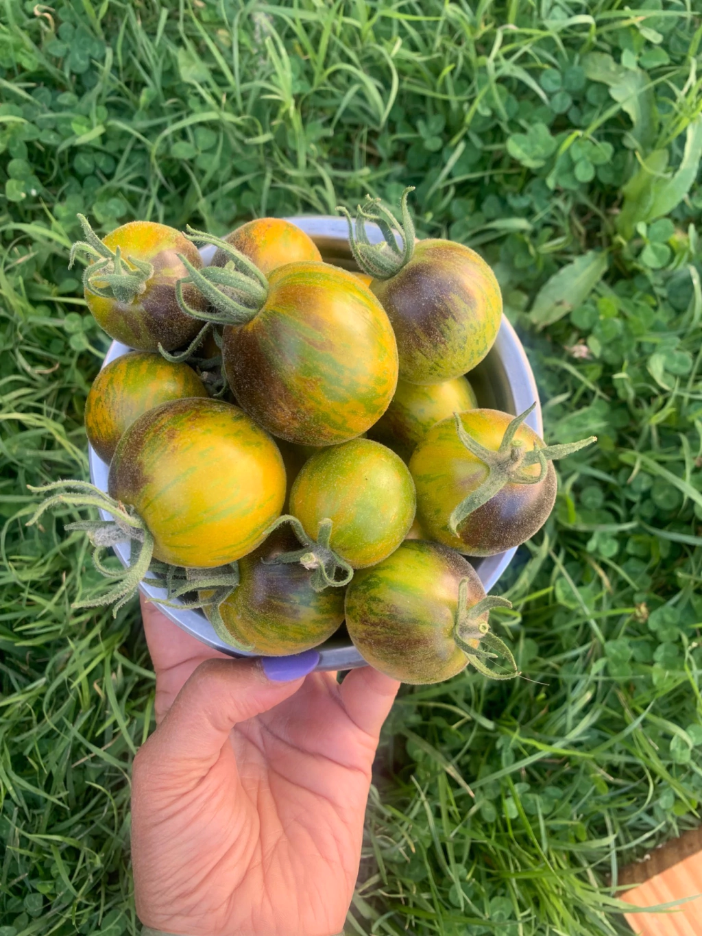 Y siiii exactamente es lo que sucede con este tomate, nombrado apropiadamente a rayas y de muchos los colores, es un tomate como hay pocos!